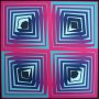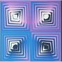 Déformation calculée qui porte sur l'ossature, utilisation du "positif - négatif" dans les espaces créés, disposition de repères définis... par ces astuces visuelles, le regard du spectateur se détourne de la trame originelle pour ne plus s'attarder que sur des formes inexistantes, illusoires.